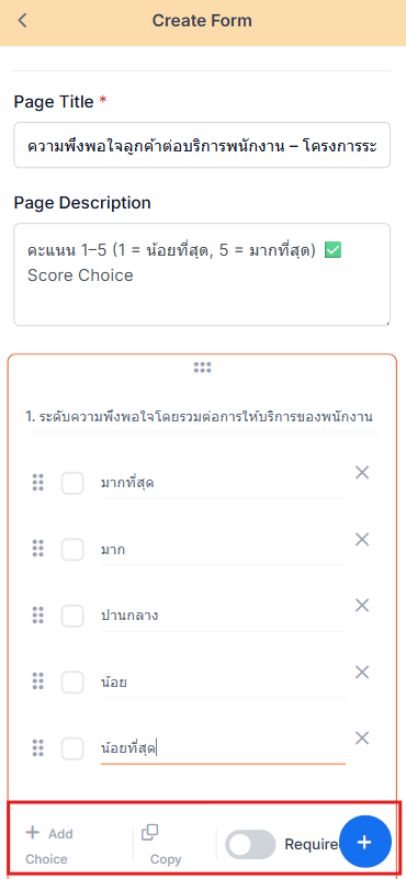 4. (ตัวอย่าง) ทำการสร้างชุดคำถามแบบสำรวจความพึงพอใจลูกค้า แบบ Multiple Choice