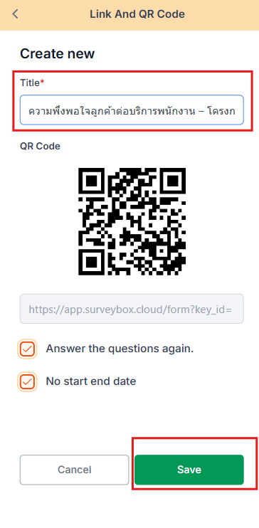 4. สร้าง Title ชุดสำรวจ เสร็จแล้วคลิกปุ่ม Save