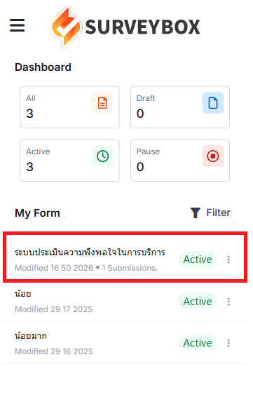 – แบบสำรวจที่กำลังเปิดใช้งาน